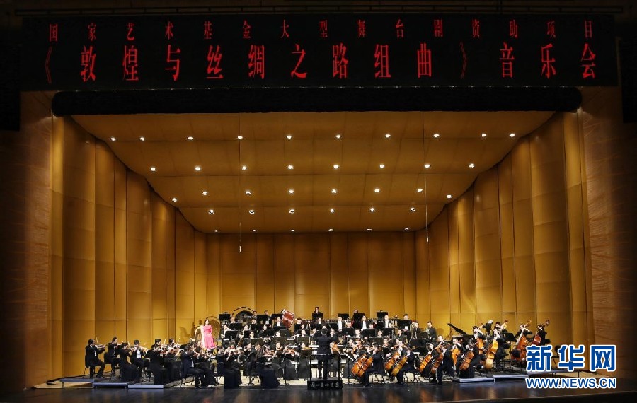 《敦煌與絲綢之路組曲》由俄羅斯作曲家布列沙克·維克多·瓦西里耶維奇創(chuàng)作,分為《朝圣敦煌》《祝福綠洲》《莫高圣禮》《藝術(shù)圣殿》《絲路情歌》《古道回聲》《海上絲路》《力與速度》和《和平萬歲》九個樂章。組曲追溯古代絲綢之路的繁榮昌盛,歌頌“一帶一路”倡議背景下今日絲綢之路的和平崛起,暢想未來絲綢之路的輝煌盛景。新華網(wǎng)發(fā)(薛強(qiáng) 攝)