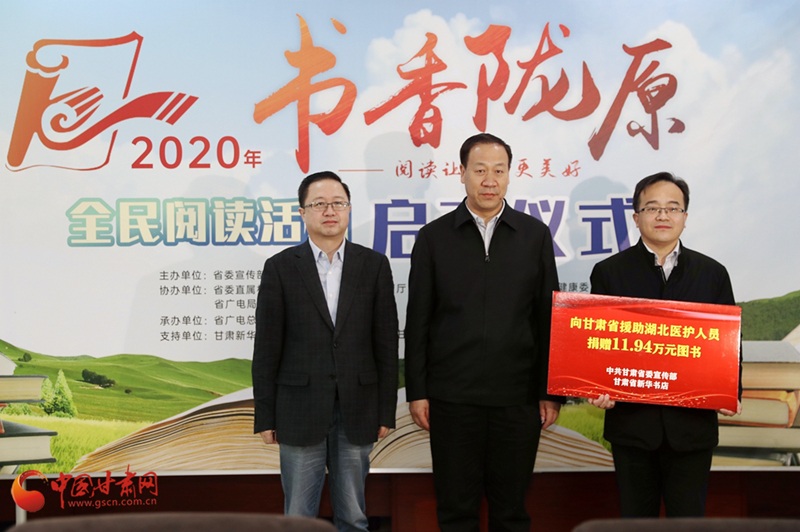 啟動儀式上,省委宣傳部副部長、省新聞出版(版權(quán))局局長王成勇宣布2020年“書香隴原”全民閱讀活動正式啟動。省委宣傳部聯(lián)合讀者集團(tuán)新華書店飛天傳媒股份有限公司通過省衛(wèi)生健康委,向全省796名支援湖北醫(yī)護(hù)人員贈送了價(jià)值11.94萬元的圖書。省內(nèi)10家出版社的相關(guān)負(fù)責(zé)人通過中國甘肅網(wǎng)現(xiàn)場直播為現(xiàn)場嘉賓、廣大網(wǎng)友推介優(yōu)秀甘版圖書。