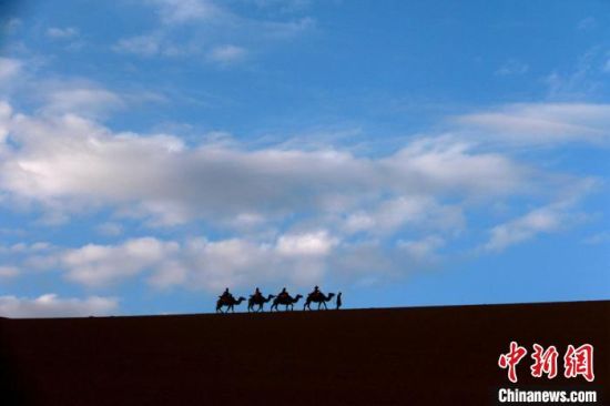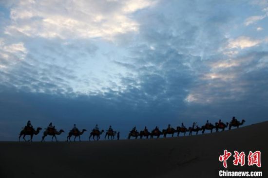 圖為敦煌大漠晨光引客“畫(huà)中游”?!垥粤?nbsp;攝
