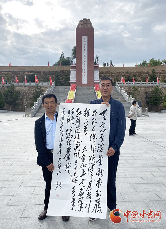 當(dāng)天,甘肅省延安精神研究會(huì)還向?qū)⑴_(tái)堡紅軍會(huì)師長(zhǎng)征會(huì)師紀(jì)念園贈(zèng)送了毛體書(shū)法作品。