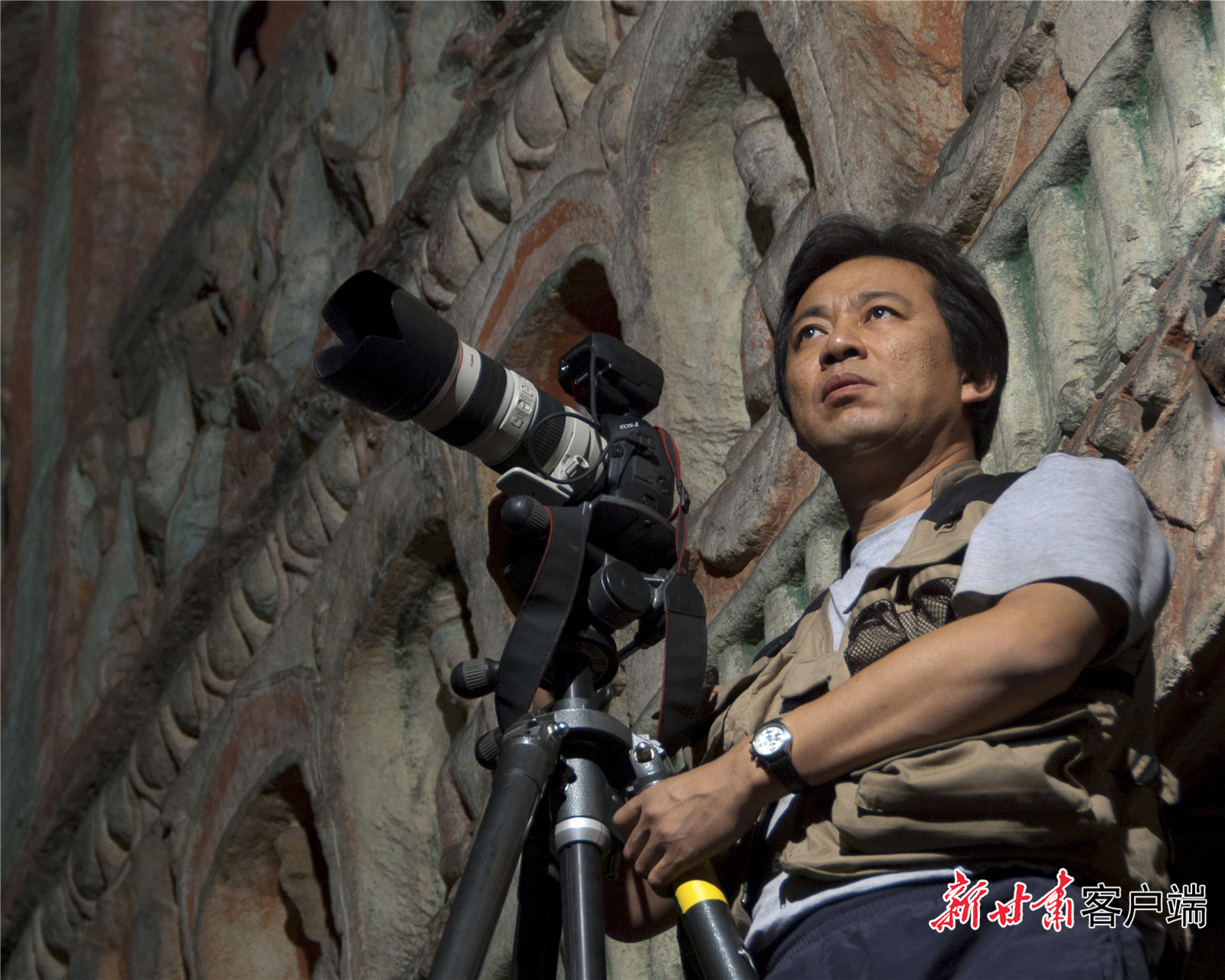 吳健工作照-云岡石窟工作現(xiàn)場(chǎng)。