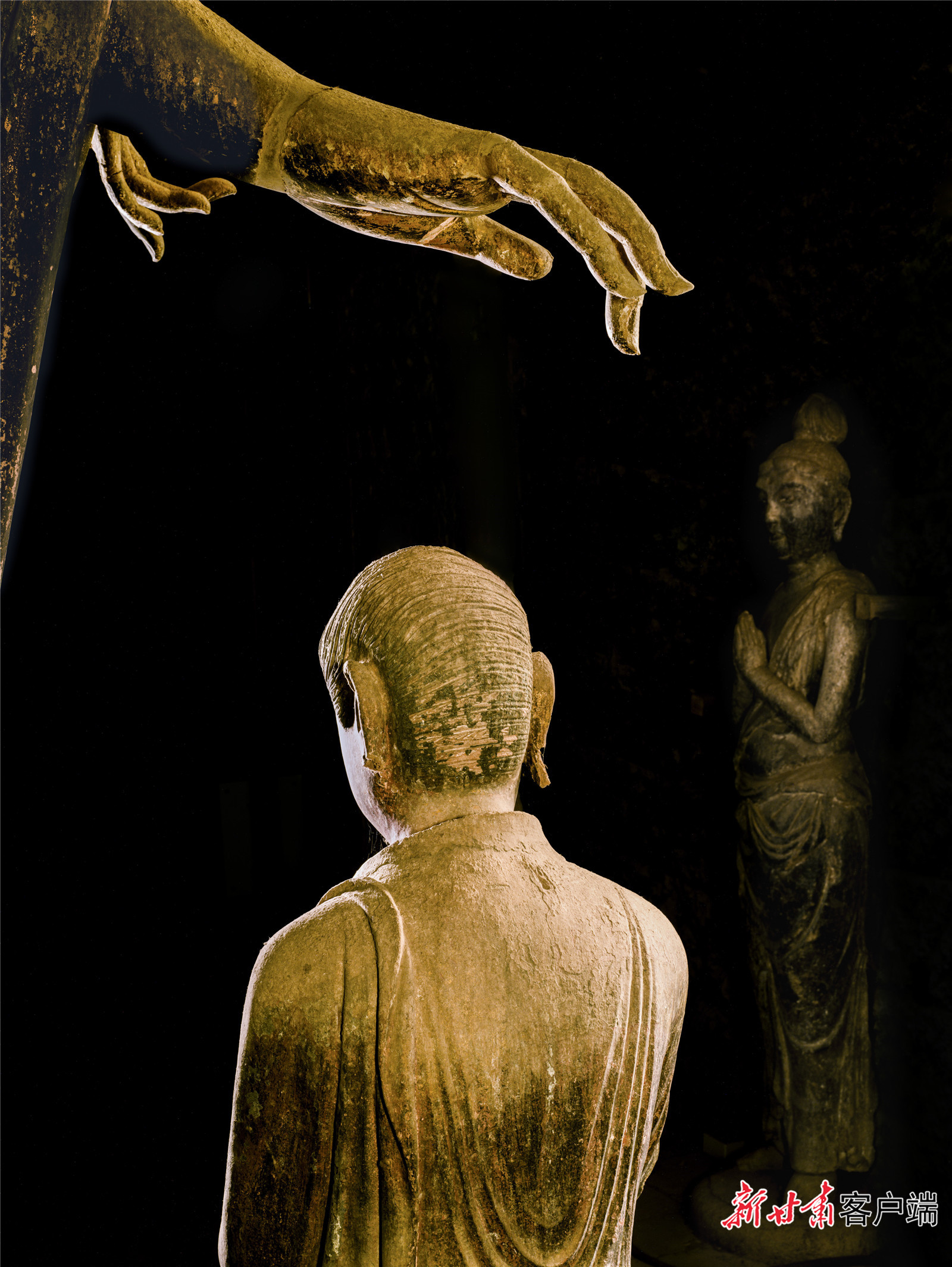 頭腦接受到太多沖擊后,吳健跳出敦煌再看敦煌藝術(shù)。他想,雕塑原來(lái)應(yīng)該這么拍!那些雕塑的原型是活生生的人啊,應(yīng)該跟人像拍攝結(jié)合起來(lái)。“攝影不同于照相,而是用光去繪畫(huà)。”