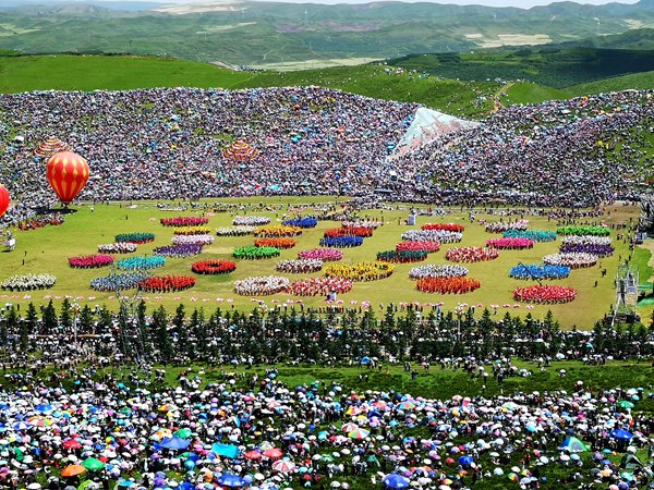 2019年7月30日,在甘肅甘南舉辦的“一會(huì)一節(jié)”吸引近20萬(wàn)名當(dāng)?shù)厝罕姾陀慰陀^看。甘肅省文旅廳供圖