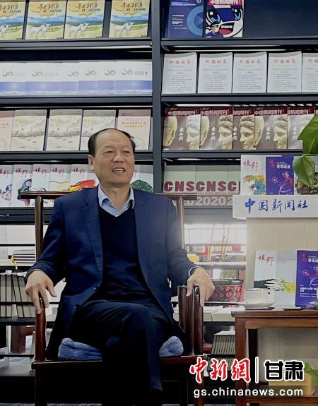 蘭州大學(xué)主辦《視野》總編輯包國憲做客中新社甘肅分社接受專訪。 九美旦增 攝