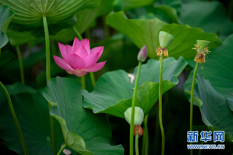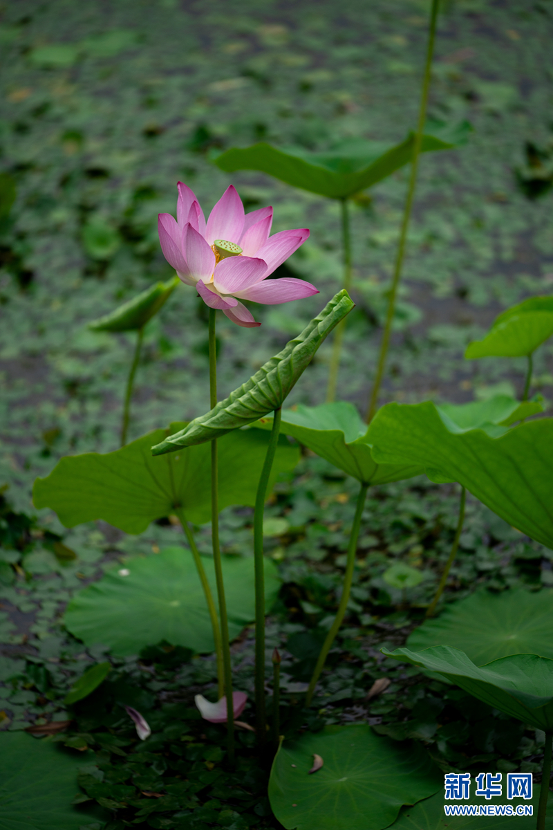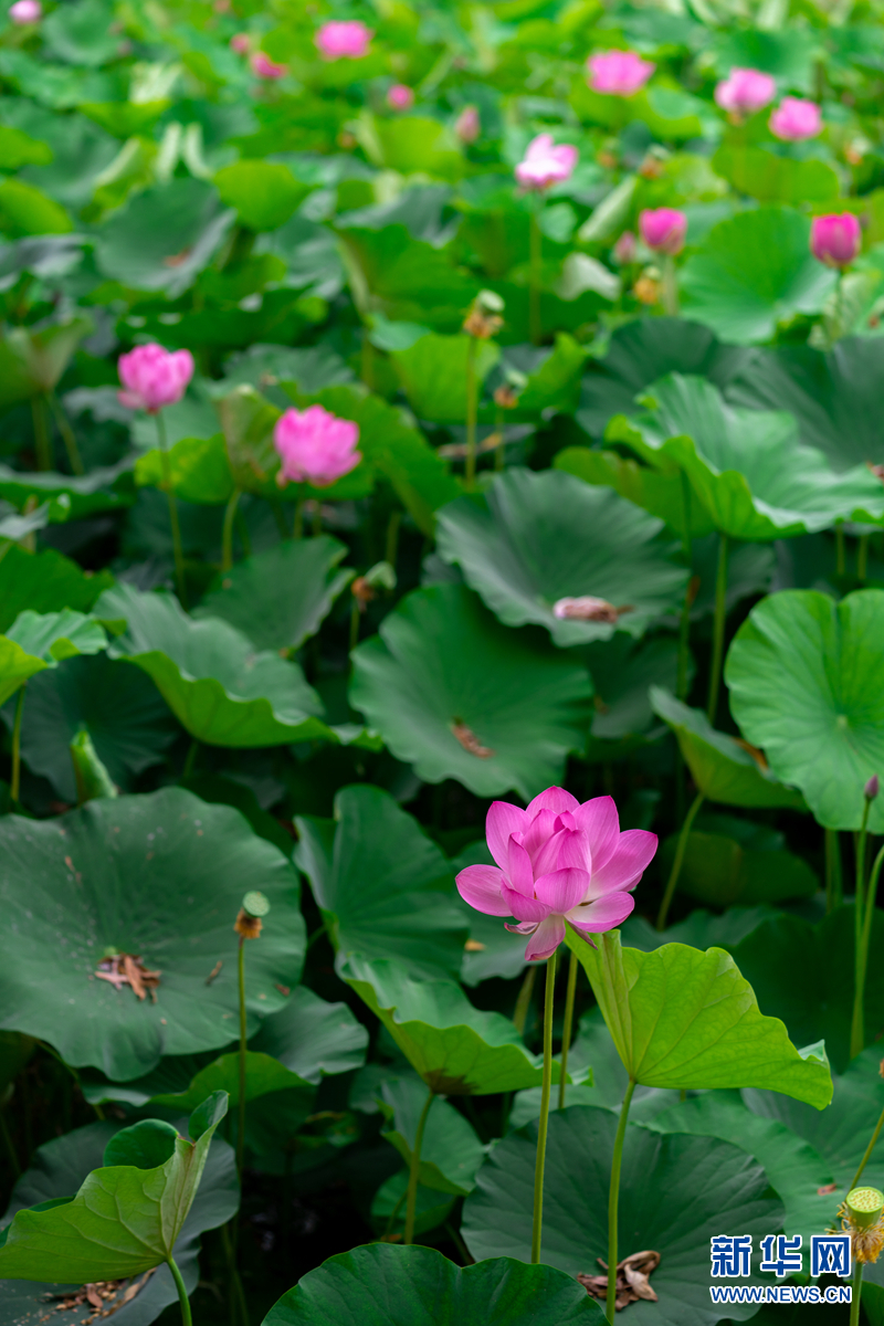 盛夏時節(jié),甘肅省隴南市成縣裴公湖里的荷花競相綻放,在炎炎夏日中帶來一絲清涼。新華網(wǎng)發(fā)(陳爭強(qiáng) 攝)