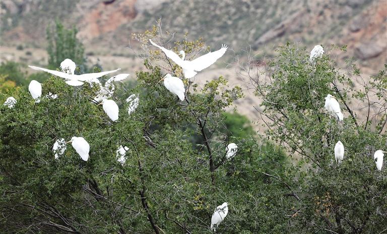 遷徙候鳥的溫馨驛站 近百只白鷺“打卡”新區(qū)秦王川國家濕地公園