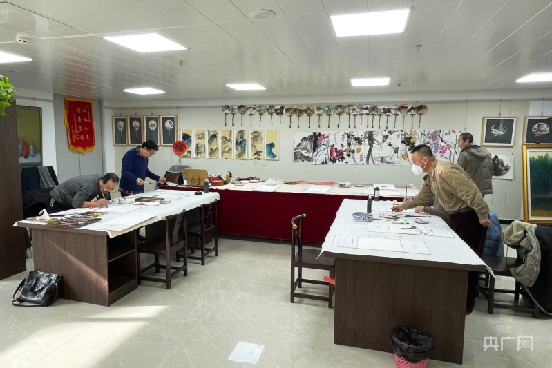 市民在美術(shù)館內(nèi)進行書畫創(chuàng)作(央廣網(wǎng)發(fā) 慶陽市委宣傳部 供圖)