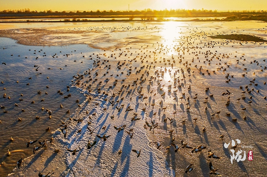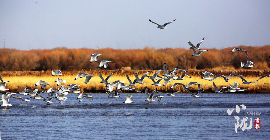 這里是甘肅民勤石羊河國家濕地公園,一處鑲嵌在騰格里和巴丹吉林兩大沙漠的“生態(tài)廊道”,位于民勤縣城以南30公里處,南起紅水河橋,北至紅崖山水庫北緣,是中國西北干旱區(qū)富有代表性的河流與沙漠水庫復(fù)合型濕地公園、荒漠濕地動植物的樂園和基因庫。