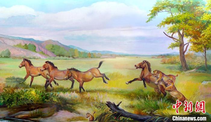 臨夏盆地早更新世真馬動物群生態(tài)復(fù)原圖?!±顦s山 繪制 攝