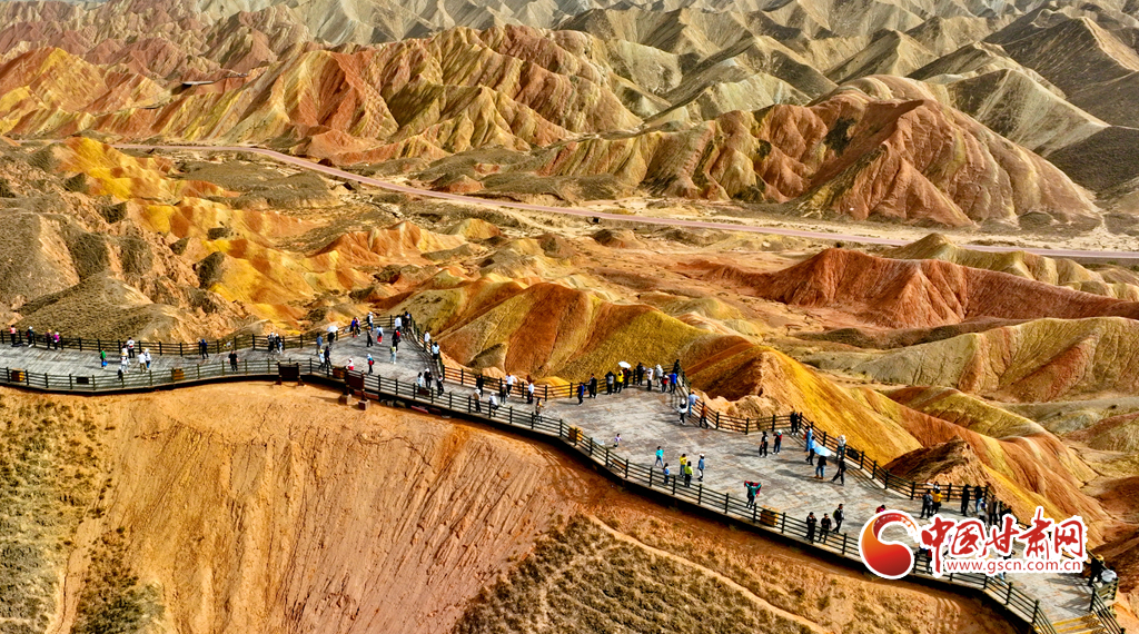 5月1日,甘肅張掖七彩丹霞旅游景區(qū)內(nèi)游人如織,來自全國各地的18000多名游客慕名前來,欣賞獨(dú)特的丹霞地貌,領(lǐng)略大自然雄奇壯觀的景色。