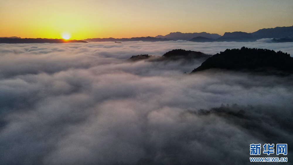 近日,甘肅省隴南市兩當縣上空云霧繚繞、煙波浩渺,縣城、山峰在霧海中若隱若現(xiàn),陽光從云霧間掠過,勾勒出一幅幅如夢如幻的美麗畫卷。新華網(wǎng)發(fā)(楊曉 攝)