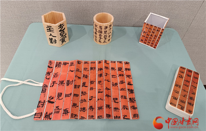 而在西北師范大學(xué)美術(shù)學(xué)院,簡(jiǎn)牘則以文創(chuàng)的形式呈現(xiàn)美感,豐富著人們的生活。近日,由西北師范大學(xué)聯(lián)合甘肅簡(jiǎn)牘博物館舉辦的“簡(jiǎn)述中國(guó) 牘懂絲路”展覽正在展出,包含簡(jiǎn)牘書法、文創(chuàng)成果兩部分。