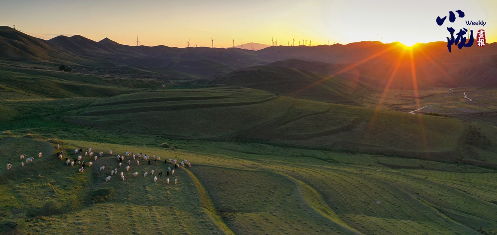 草原上的牛羊相互追逐,在落日余暉中變得格外溫馨,處處都是“風(fēng)吹草低見牛羊”的多彩景象。