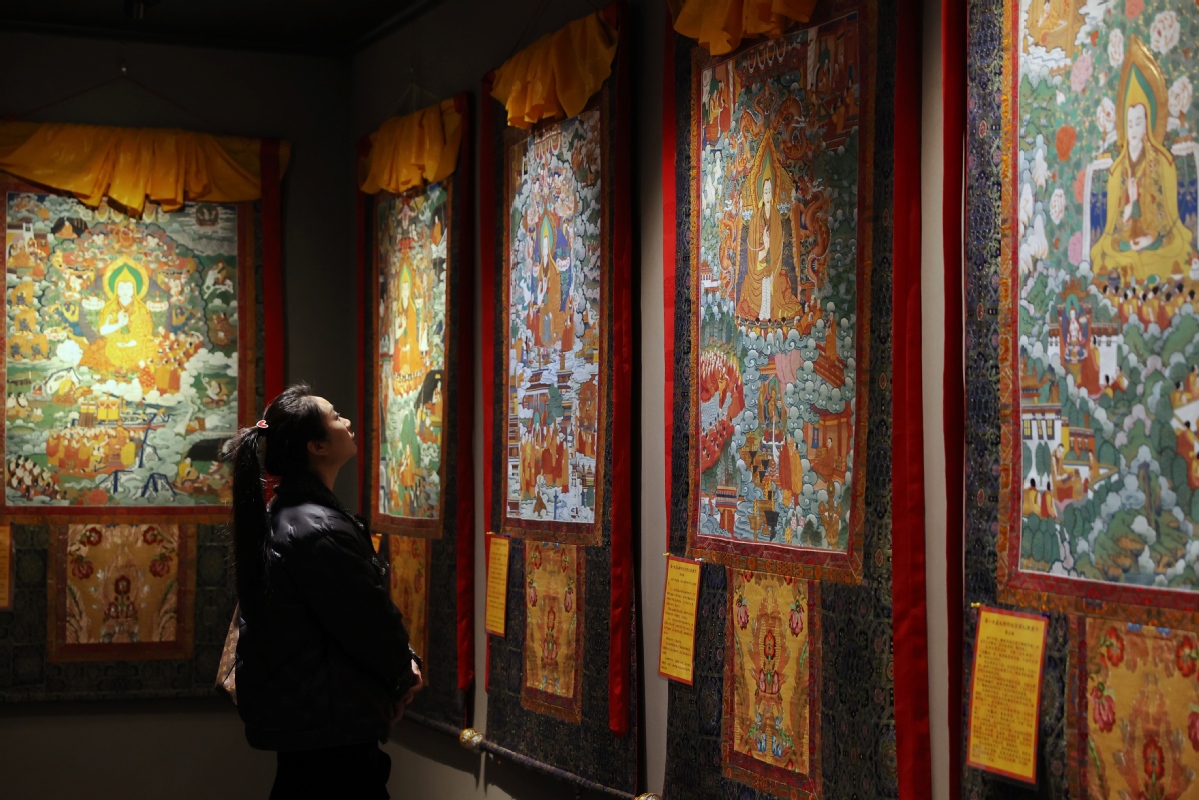 12月26日,北京,觀眾在皇城藝術(shù)館參觀《甘肅甘南非遺文化藝術(shù)展》。中國(guó)日?qǐng)?bào)記者 姜東 攝