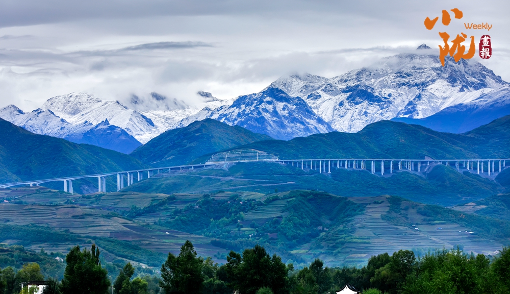 層巒疊嶂的雪峰和蔥郁的山坡、綠樹形成鮮明對比,成為一道靚麗的風(fēng)景線。駐足遠(yuǎn)觀,滿眼都是大自然的溫柔與浪漫。