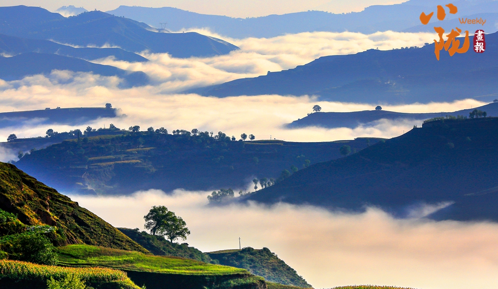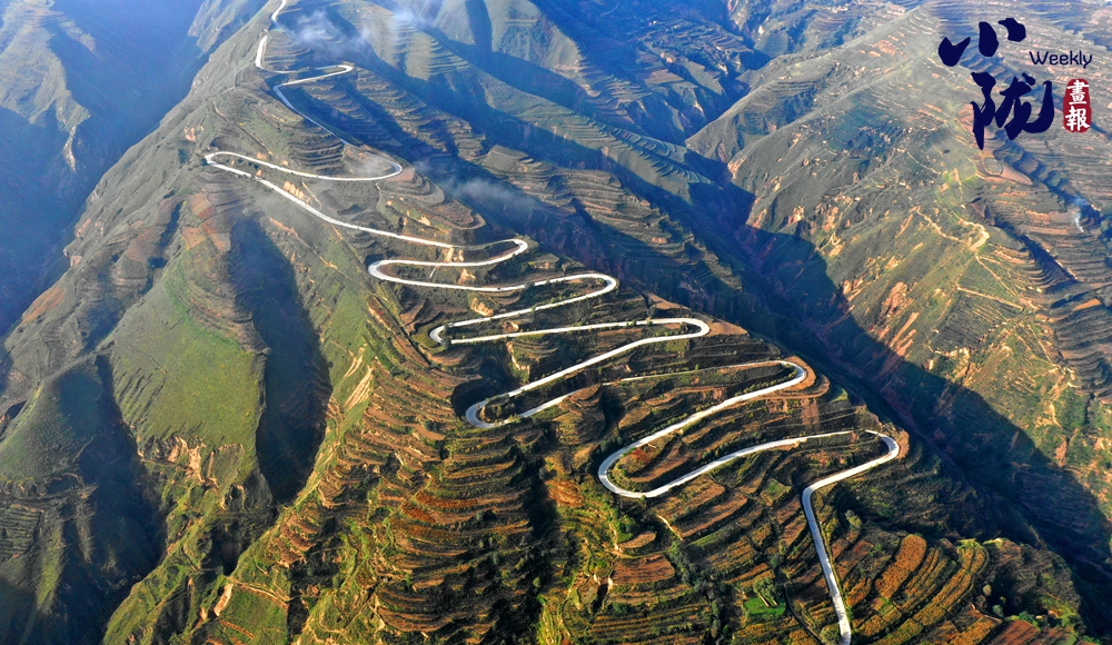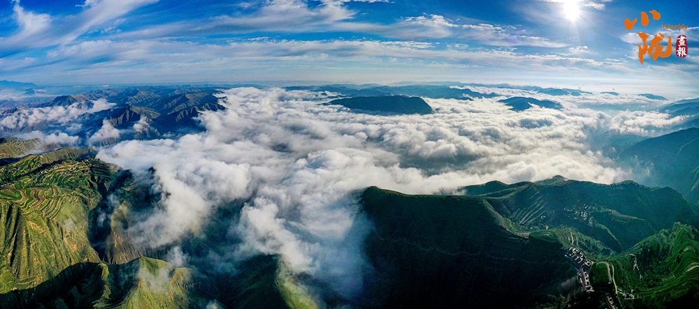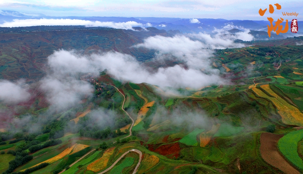 在旅游大通道積石山段遠(yuǎn)眺,云霧穿山飄過,遠(yuǎn)處的村莊和梯田時(shí)隱時(shí)現(xiàn),遠(yuǎn)山近嶺,草樹煙村......置身其中,仿佛步入了人間仙境。