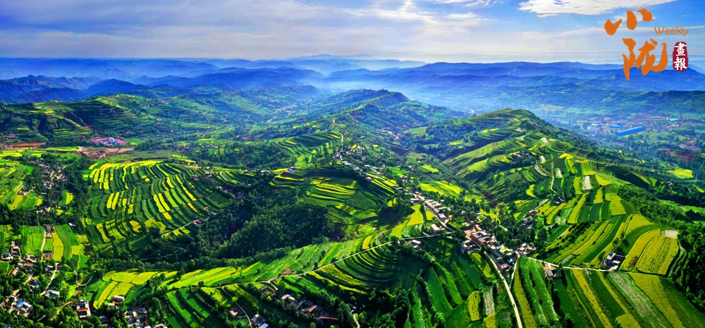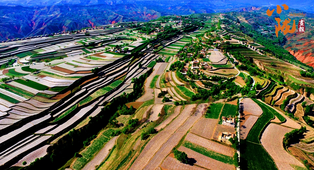 一塊塊梯田,從山峁到山腳,依次而下,大大小小,一層層、一片片,遠(yuǎn)遠(yuǎn)望去,千層萬疊,一片紛繁。蔥綠與明黃裝扮的沃野,是季節(jié)的舞衣,也是莊戶人的希望。