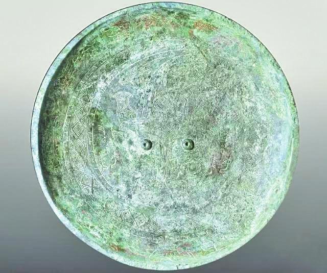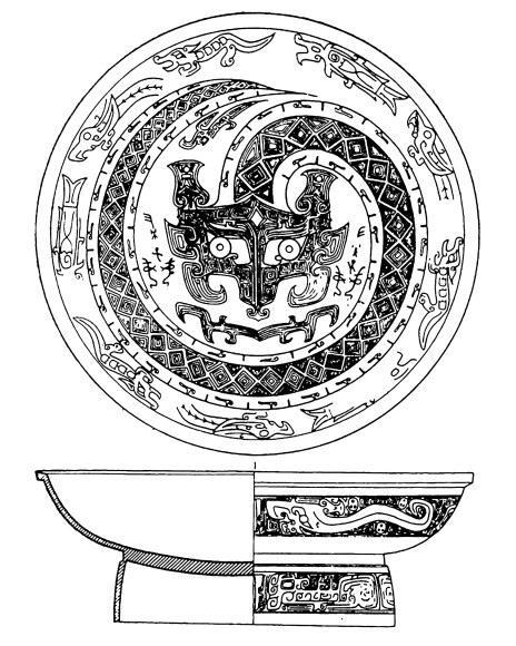 河南婦好墓出土婦好盤(pán),口徑約36厘米,重5.9千克。腹外壁飾連續(xù)帶狀夔紋,足外壁飾連續(xù)帶狀饕餮紋,盤(pán)內(nèi)壁以蟠龍為主紋,龍頭位于盤(pán)心,頭下配一夔紋,頭兩側(cè)分別鑄“婦好”銘文,蟠龍外圍飾一圈獸形紋,裝飾非常華麗。