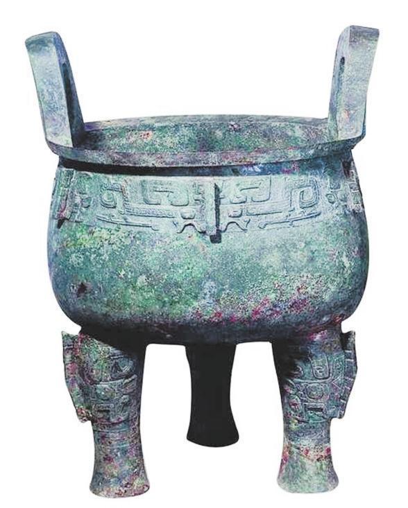 西周最大的圓鼎是陜西歷史博物館收藏的淳化大鼎,造型魁偉、深厚凝重,其造型基本保持了商代晚期胎壁寬厚、形體恢弘、凝重壯闊的風(fēng)格。大鼎通高122厘米,口徑83厘米,耳高28.6厘米,腹深54厘米,重226千克,是迄今世界上最大、最重的西周青銅器,也是迄今出土的西周圓鼎中最大者。淳化大鼎因體形太大太重,除口沿上有兩耳外,器身腰部亦有三耳,形如酒器中的銴。一般的鼎,大多只有口沿耳。淳化大鼎腰部三只獸首屈舌銴,為以往出土銅鼎所未見(jiàn),故又名為獸首屈舌銴鼎、獸面紋五耳鼎。除了獨(dú)特的三耳,淳化大鼎腰部的龍紋和獸面紋的結(jié)合也很有特色。三面各有兩只夔龍,與中間的扉棱組合在一起看,則形成了一張由扉棱為鼻的獸面,即饕餮紋。三張獸面的扉棱下各有一只逼真的牛首浮雕,如同饕餮欲吞食牛,起威懾之用,所以也稱(chēng)牛首夔龍紋鼎、龍紋鼎等。
