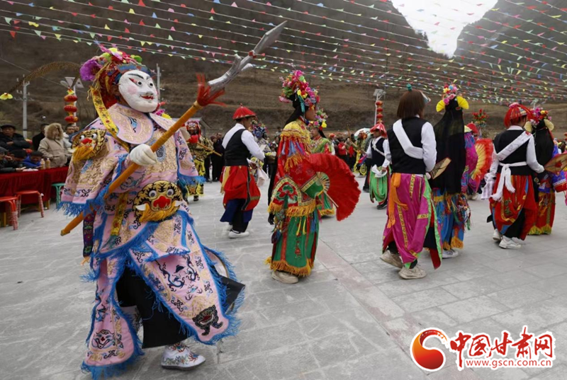 2024年2月19日,甘肅省隴南市武都區(qū)魚龍鎮(zhèn)柏家溝村,村民在表演當?shù)靥厣珓》N、國家級非物質文化遺產(chǎn)——高山戲。