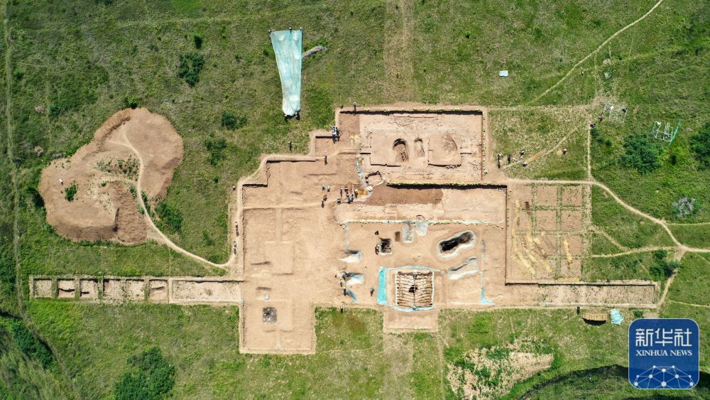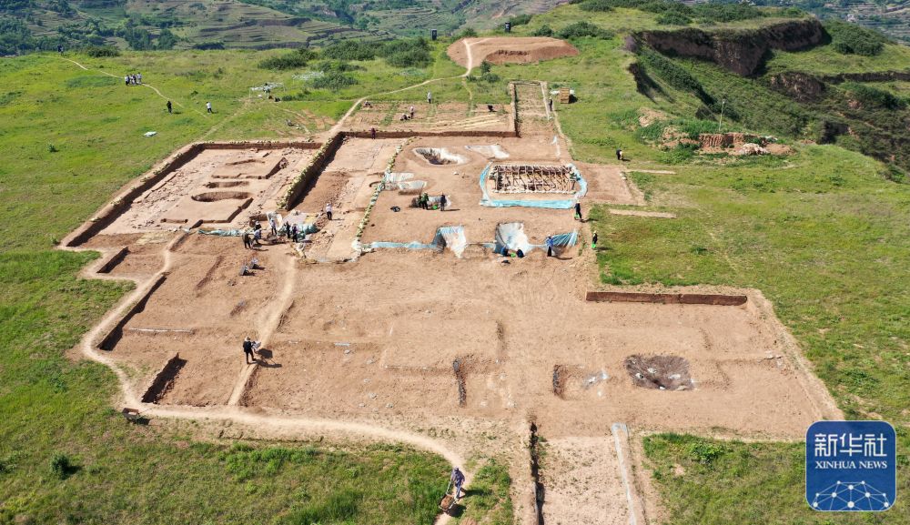 這是2022年6月10日拍攝的甘肅省隴南市禮縣四角坪遺址考古發(fā)掘現(xiàn)場(chǎng)(無人機(jī)照片)。新華社記者 郎兵兵 攝
