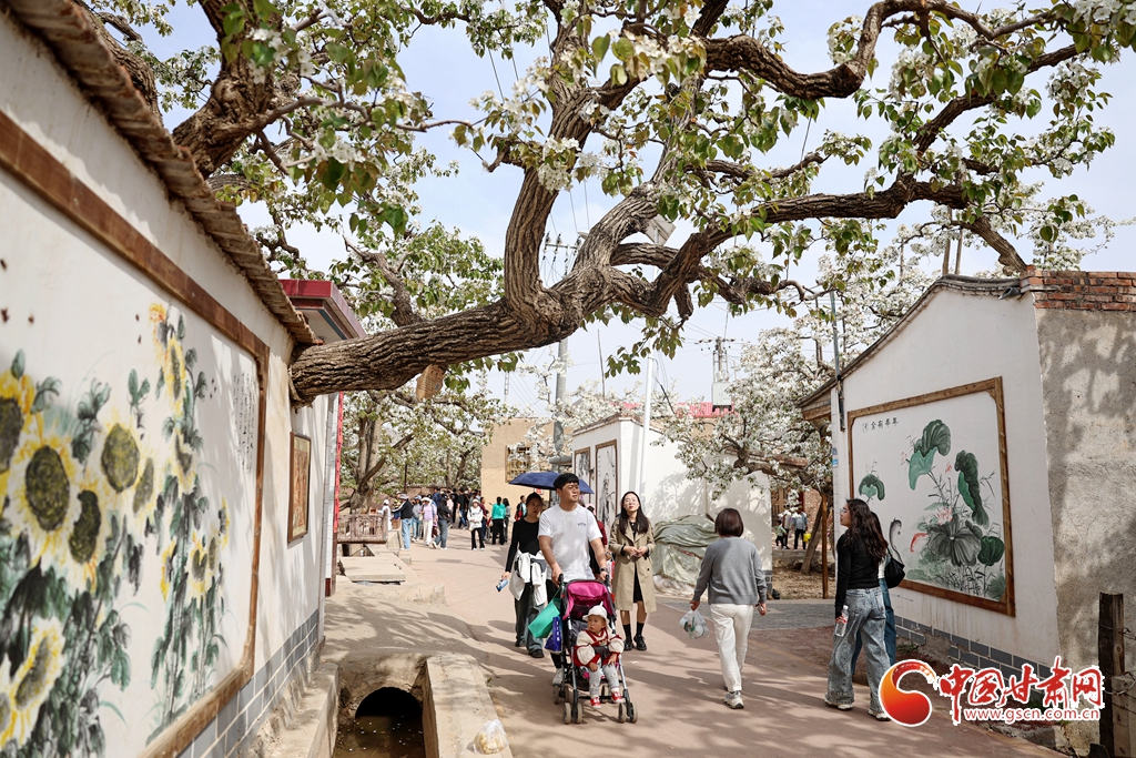 4月13日,位于甘肅省蘭州市皋蘭縣什川鎮(zhèn)的百年梨園綻放如雪,吸引眾多游客前來(lái)踏青賞花。