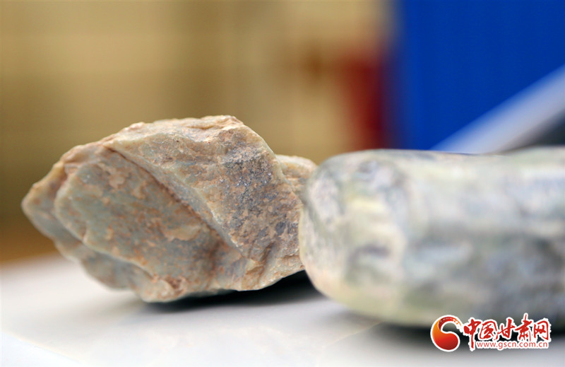 當?shù)卮迕裣虿稍L團展示了他在“玉山”下?lián)斓降膸讐K玉石,以及自己打磨制作的玉石掛件。大家逐塊端詳,馮玉雷激動地說:“這就是最典型的馬銜山透閃石玉,可以進入臨洮縣博物館作為標本保存……”