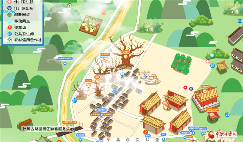 由于百年古梨園位于村落之間,占地面積大且道路蜿蜒曲折,許多外地游客在這里總會(huì)因?yàn)槁窙r不熟或者看不懂紙質(zhì)地圖而走很多冤枉路。針對(duì)游客的這一痛點(diǎn),中國(guó)移動(dòng)甘肅公司蘭州分公司依托云網(wǎng)融合和數(shù)字化服務(wù)優(yōu)勢(shì),為什川梨園及周邊景區(qū)量身打造了5G+VR手繪地圖智慧導(dǎo)覽服務(wù),根據(jù)當(dāng)?shù)仫L(fēng)格特色定制手繪地圖,展示當(dāng)?shù)鼐包c(diǎn)及場(chǎng)所地標(biāo)名稱,并可結(jié)合語(yǔ)音講解充分展現(xiàn)歷史背景、文物故事、人物典故等景區(qū)相關(guān)信息,真正讓每一位游客感受到“一部手機(jī)游梨園”的便利。