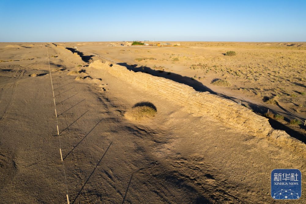 ↑這是張吉全和聞春瑜夫婦負(fù)責(zé)巡護(hù)的一段漢長城遺址(7月16日攝,無人機(jī)照片)。