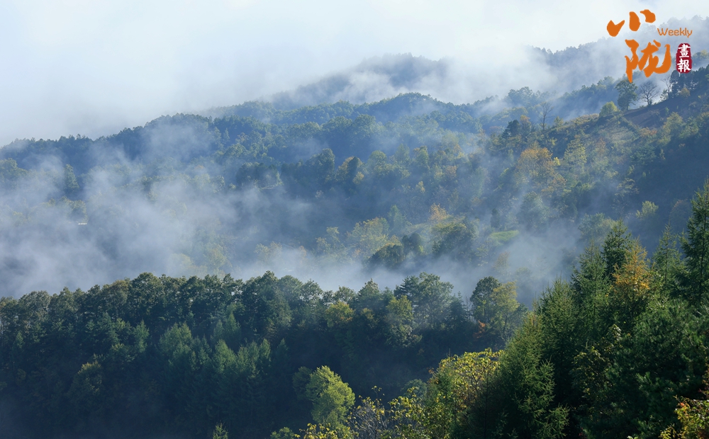 蕩漾在翠綠山間的茫茫云霧,如飄逸的輕紗,舒卷自如,與青山、民居構成了優(yōu)美畫卷。