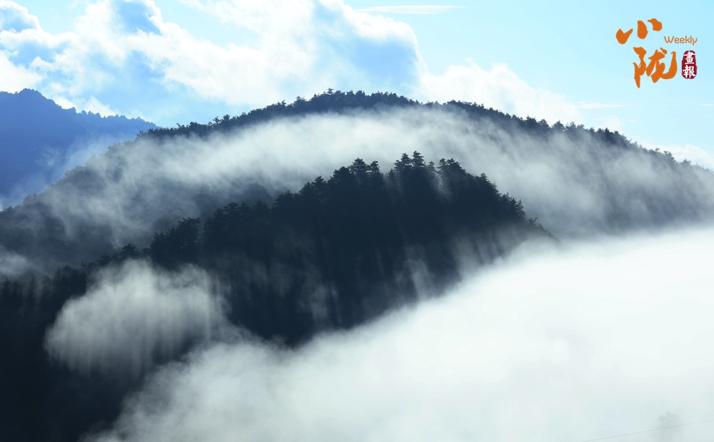 縹緲而柔軟的白霧,彌漫在山川河谷,覆蓋著層疊起伏的翠峰,恍如白浪滔滔的大海之上呈現(xiàn)出座座綠色島嶼。