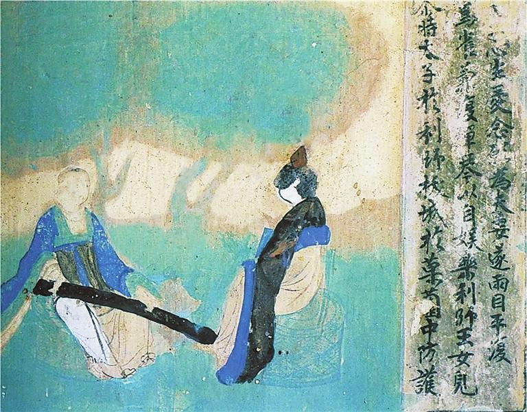 在莫高窟第321窟壁畫中有一幅“青年男女圖”:畫面中一對戀人穿著“情侶衫”,女子的上衣與男子的長袍是同樣的淡綠色。他們兩人身材高挑、情意綿綿,女子右手前指,含情脈脈望向男子,男子喜不自禁,右手緊握著女子長長的左邊衣袖。在莫高窟第85窟壁畫中有一幅“樹下彈琴圖”:畫面描摹的是波羅奈國太子善友與作惡多端的弟弟惡友的故事。善友被弟弟設(shè)計陷害,雙目失明,悲憤不已的他只能在樹下彈琴來排遣不幸,美麗的利師跋國公主被他的琴聲吸引感動,不顧一切與他結(jié)為夫妻。后來在公主的幫助下,善友太子奪回了屬于自己的一切。畫面里的善友與公主二人神色寧靜,祥和雋永。在榆林窟第38窟壁畫中有一幅“同入青廬圖”:畫面上一對男女衣著華美,男子一襲赭紅長衫,喜氣洋洋;女子著套色衣裙,衣袂飄飄,緊緊依偎在愛人身邊,正可謂“金風(fēng)玉露一相逢,便勝卻人間無數(shù)”。