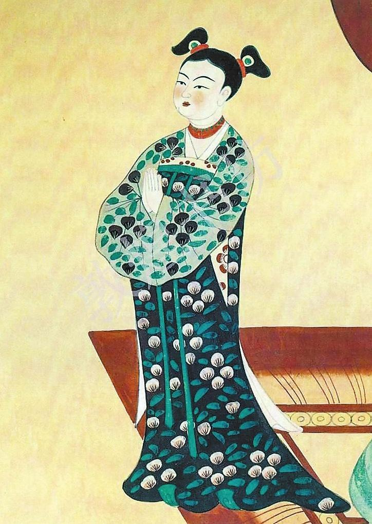 我們都知道服裝最經(jīng)典的配色是黑白灰,尤其是黑白配,其實這種配色也是敦煌壁畫中的經(jīng)典。在莫高窟第100窟壁畫中有一幅“舞者圖”:畫面上男舞者被定格在一個扭腰送胯雙臂屈伸的舞蹈動作中,他上身穿著中長款的黑色圓領(lǐng)長袖缺胯衫,用白色帛帶束腰。下身則搭配一條白底團花大口褲。在莫高窟第12窟壁畫中有一幅“供養(yǎng)人圖”:畫面上一對母女身著襦裙,上襦下裙的著裝風(fēng)格相當(dāng)于今天服飾的無袖連衣裙加一件長袖開衫。在畫面上女兒的上衣和媽媽的裙子是同樣的藍色,女孩的裙子和媽媽上衣是同為赭色,只不過各自的花紋樣式不同,但是母女倆胸前的結(jié)帶卻是同色同花、一模一樣。畫師如此別出心裁的呼應(yīng),顯得既溫情又醒目。