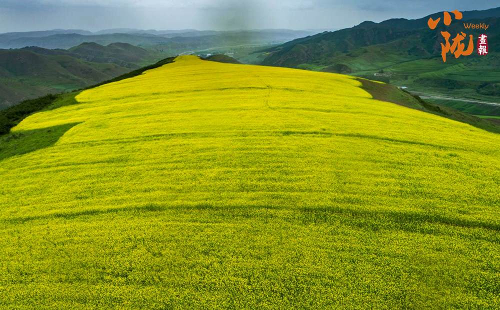 黃燦燦的油菜花鋪蓋在逶迤的山坡上,染盡山野,與此起彼伏的祁連山脈、古樸的民舍、一望無際的田野,共同繪就了一幅極具藝術(shù)感的“油畫”。