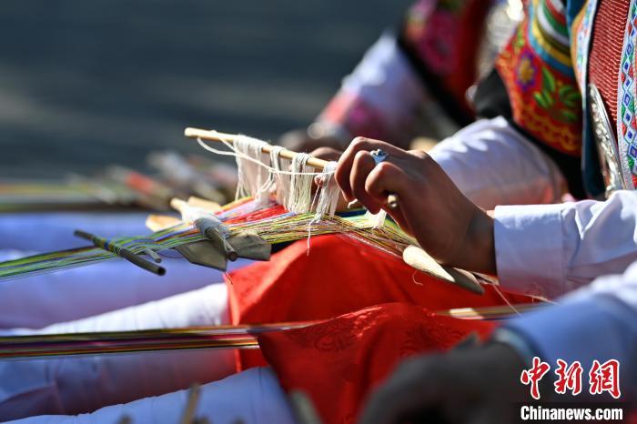9月26日,甘肅省甘南藏族自治州舟曲縣,當(dāng)?shù)夭刈鍕D女紡織錦帶。錦帶是舟曲藏族婦女用以束腰、扎靴、攏發(fā)乃至點(diǎn)綴服飾的花帶子,艷麗多彩、圖案優(yōu)美。每逢吉慶節(jié)日,藏族婦女穿戴的華麗盛裝就需要少則五、六條,多則十幾條寬窄長(zhǎng)短相宜的錦帶來(lái)裝飾。據(jù)介紹,藏族織錦帶技藝歷史悠久,一千多年以前,古羌族和吐蕃已有了較發(fā)達(dá)的手工編織技術(shù),在艱難的生活條件下對(duì)服飾等生活用品除實(shí)用功能之外,已經(jīng)有了強(qiáng)烈的審美追求,是研究舟曲羌藏文化的“活化石”。中新社記者 九美旦增 攝