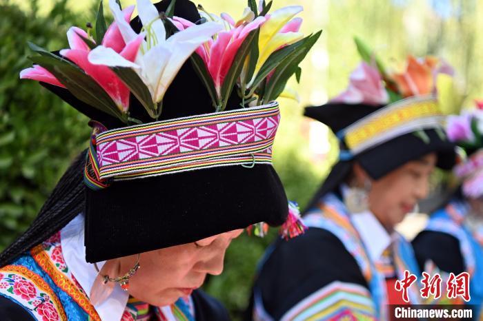 9月26日,甘肅省甘南藏族自治州舟曲縣,當(dāng)?shù)夭刈鍕D女展示錦帶佩戴方式。錦帶是舟曲藏族婦女用以束腰、扎靴、攏發(fā)乃至點(diǎn)綴服飾的花帶子,艷麗多彩、圖案優(yōu)美。每逢吉慶節(jié)日,藏族婦女穿戴的華麗盛裝就需要少則五、六條,多則十幾條寬窄長(zhǎng)短相宜的錦帶來(lái)裝飾。據(jù)介紹,藏族織錦帶技藝歷史悠久,一千多年以前,古羌族和吐蕃已有了較發(fā)達(dá)的手工編織技術(shù),在艱難的生活條件下對(duì)服飾等生活用品除實(shí)用功能之外,已經(jīng)有了強(qiáng)烈的審美追求,是研究舟曲羌藏文化的“活化石”。中新社記者 九美旦增 攝