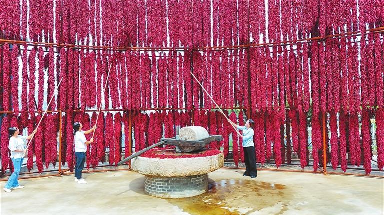 位于甘谷縣安遠鎮(zhèn)上河灣村的甘肅隴上椒農(nóng)業(yè)科技(集團)有限公司,工作人員正在晾曬辣椒。新甘肅·甘肅日報通訊員 王啟寧