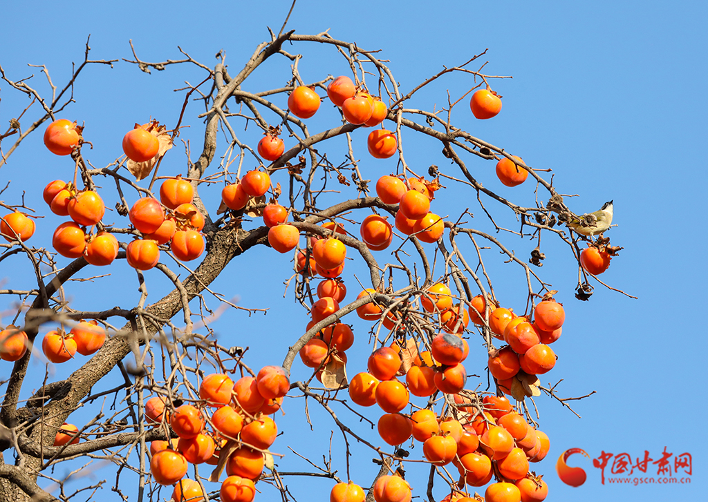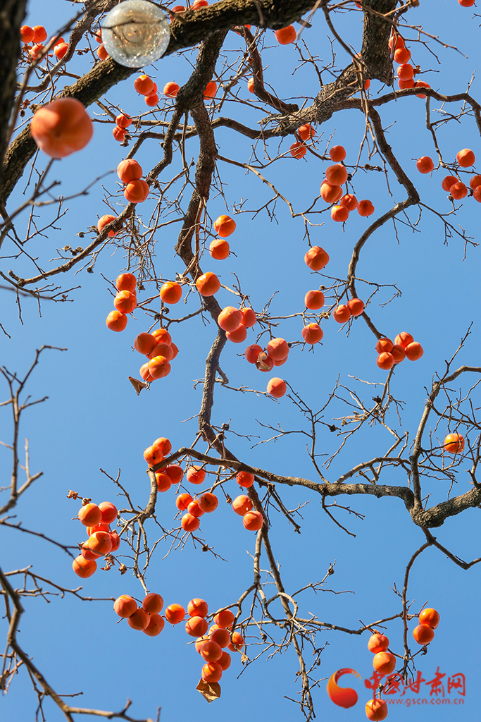 秋去冬來,萬物沉寂。在平?jīng)龀缧牛磷訕渖蠏鞚M了果實,又是一年柿子紅。