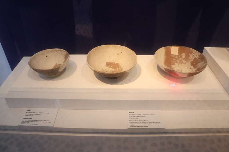 大地灣遺址出土的陶碗和圓足碗(距今約7800-7300年)。新華網(wǎng)發(fā)(郭林玉 攝)
