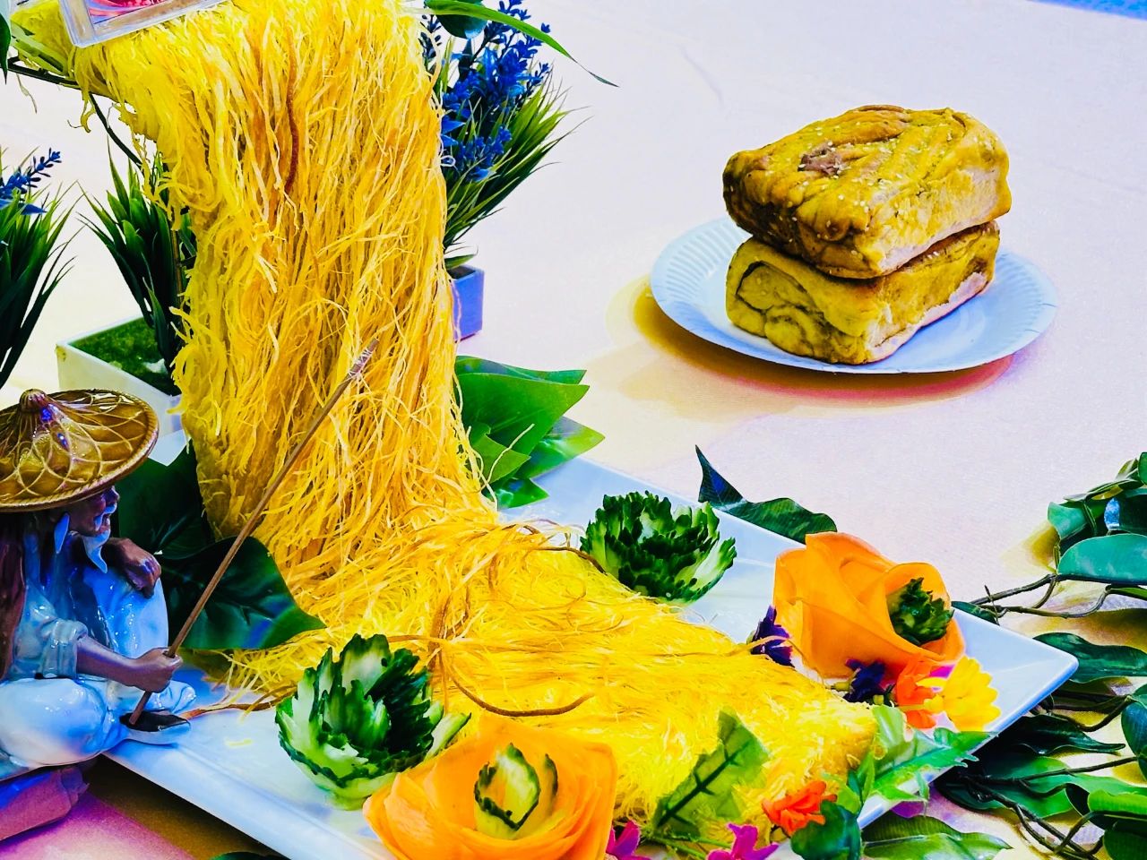 鍋盔則彰顯著力量與耐心。面團(tuán)經(jīng)過反復(fù)多次大力地揉壓,直到堅(jiān)韌而有彈性。接著,將面團(tuán)搟成大大的圓餅,厚度可觀。在特制的爐中慢慢烤制,使其外皮變得金黃硬實(shí),而內(nèi)部依舊保持著柔韌。咬一口,是滿滿的厚實(shí)感。麥香在咀嚼中愈發(fā)濃郁,就像西北大地般質(zhì)樸醇厚。