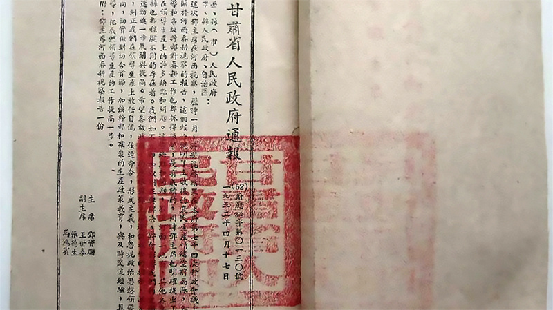 1950年1月8日,鄧寶珊正式就任甘肅省人民政府主席和省長。他感到責(zé)任重大,也對甘肅的發(fā)展充滿了希望。他經(jīng)常到下面體察民情,足跡遍布全省的各個縣。在不能通車的偏遠地方,就是步行幾小時也要走到下面的村縣。1952年3月2日,鄧寶珊主席一行從蘭州出發(fā),對武威和酒泉兩個專區(qū)展開視察,歷時一個多月,走訪了永登、古浪、山丹、張掖、敦煌等13個縣。山丹縣1950年劃歸武威專區(qū),1955年后復(fù)歸張掖專區(qū)。