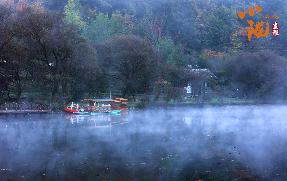 漫山染橙黃,彩池映秋色。天鵝湖湖波瀲滟,群山倒映,碧霞煙柳,移步換景,似乎走進了蘇州園林。