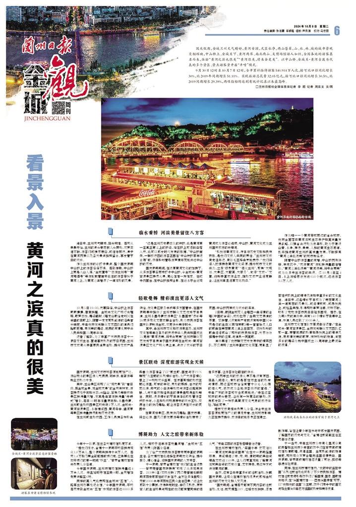 2024年國慶期間,中山橋、金城關(guān)·黃河古渡景區(qū)牽引帶動全市文旅市場火爆,9月30日12時至10月7日12時,全市累計接待游客540.914萬人次,實(shí)現(xiàn)旅游總花費(fèi)32.05億元,兩項(xiàng)指標(biāo)均達(dá)到有統(tǒng)計記錄以來最高峰。