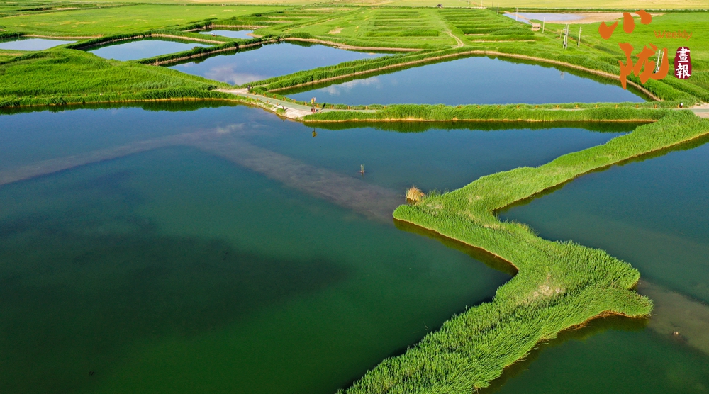 湖邊,蘆葦綠意盎然,隨風(fēng)泛起綠色的波浪,染翠了整個草湖。每當風(fēng)兒掠過,這些層層疊疊的綠意散發(fā)出沁人肺腑的草木清香。在這樣炎熱的日子里,看看這樣清澈的綠,夏天好像變得清涼起來。