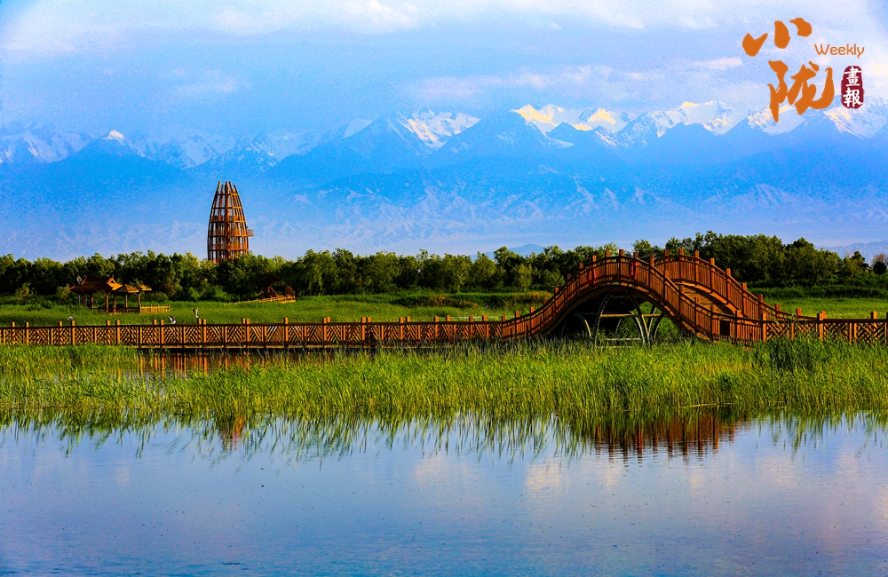 草湖濕地公園總面積1379公頃,憑借討賴河、露頭泉水和地下水資源,形成了由沼澤地、天然草甸和荒漠植被組成的綠洲生態(tài)系統(tǒng),北通大漠、南望祁連,構(gòu)成“沙漠、湖泊,戈壁、濕地,白雪、綠草”共寓一境的奇特景觀。