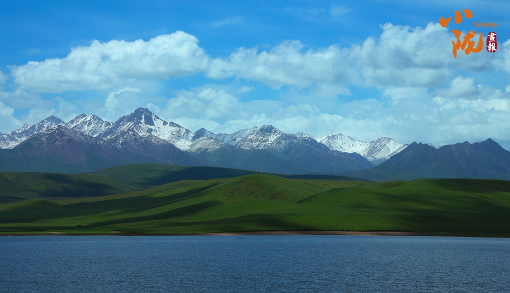 抬頭仰望,巍峨的祁連山屹立在天地之間,如同一位莊嚴(yán)的巨人。山頂終年不化的積雪在陽(yáng)光下閃耀著圣潔的光芒,與湛藍(lán)的天空、綠色的草地相互映襯,形成了強(qiáng)烈的視覺(jué)沖擊。近處的湖水清淺,像一塊渾然天成的翡翠,純粹得不含一絲雜質(zhì)。