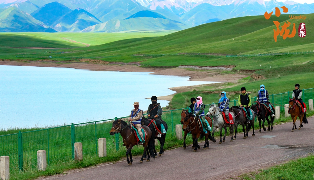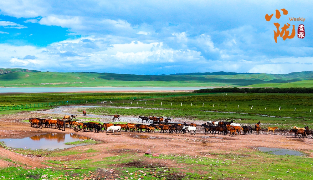 碧空澄澈,云朵如輕柔棉絮般漂浮其中,遠(yuǎn)處草場(chǎng)連綿起伏。牧民們趕著自家的馬群,向著繁茂的草場(chǎng)前行,氣勢(shì)雄壯。千百年來(lái),馬兒一直是草原上的英雄,載著厚重的歷史車輪,載著游牧民族的繁衍生息,載著蒼勁渾厚悠揚(yáng)的歌聲從亙古疾馳,滾滾而來(lái)。