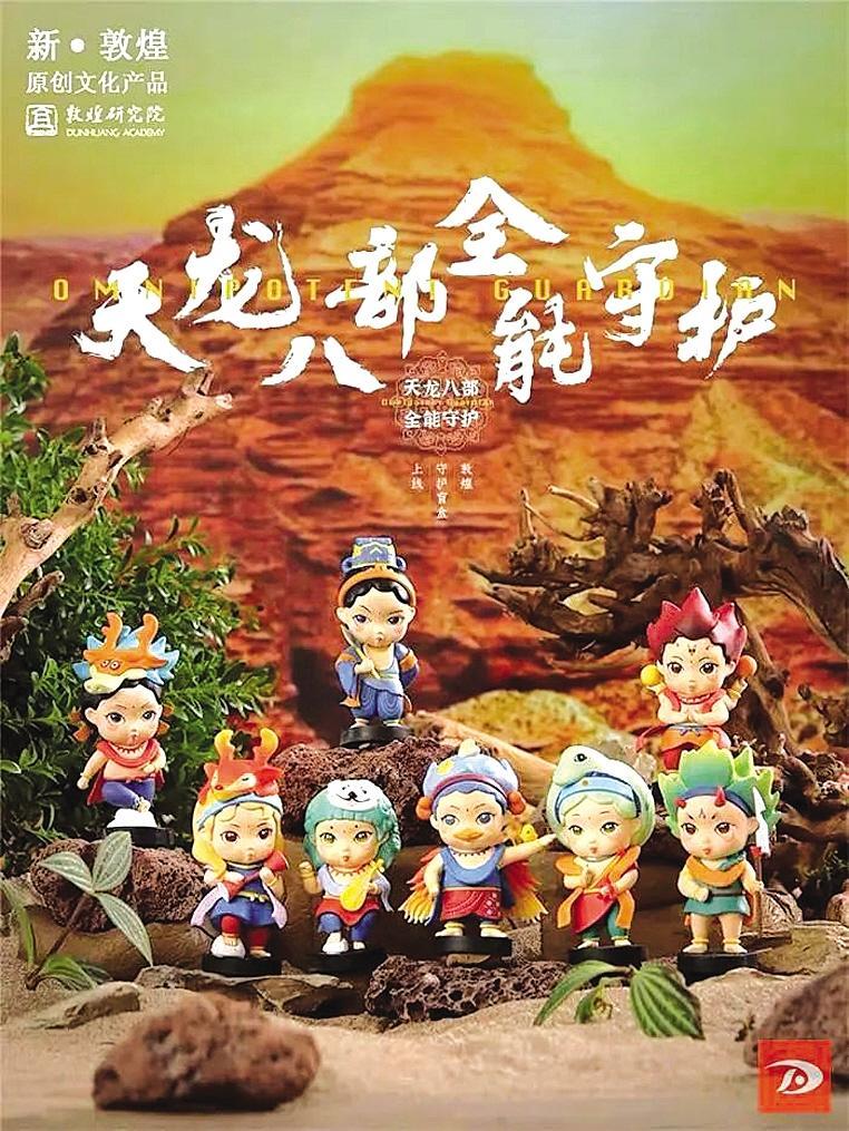 盲盒的設(shè)計(jì)取自敦煌莫高窟壁畫(huà),特指佛經(jīng)中的八種神道怪物,和金庸的小說(shuō)《天龍八部》也有人物對(duì)照。盲盒包括迦樓羅、乾闥婆、夜叉、摩睺羅伽、帝釋天、緊那羅、阿修羅、那伽八大護(hù)法神形象。這也是繼故宮、河南博物院、三星堆博物館之后,敦煌研究院又推出盲盒。