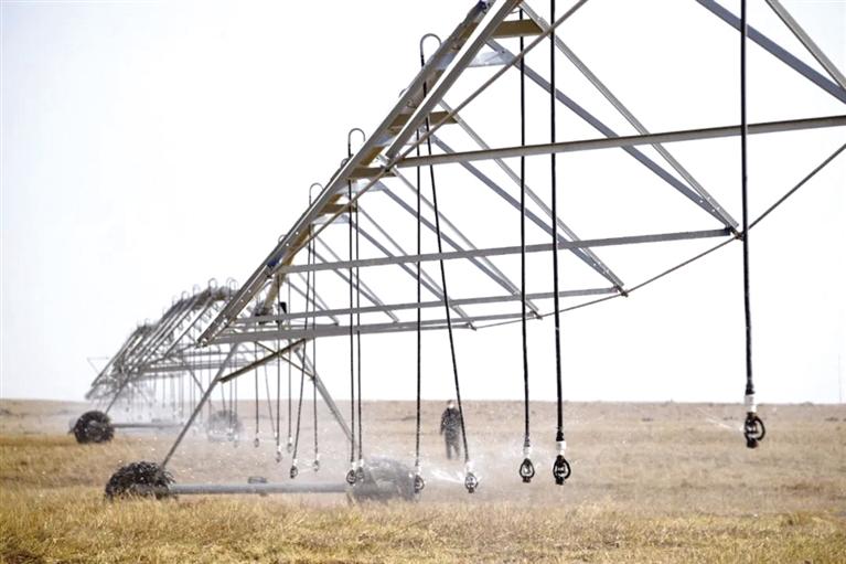 在農(nóng)投集團(tuán)現(xiàn)代牧草休閑示范園項目,平整一新的2.3萬畝土地上,3組大型噴灌設(shè)備已經(jīng)投入緊張的工作中,隨著工作人員啟動設(shè)備,噴灌機(jī)所過之處土地一片濕潤,空氣中充滿了泥土的清新。據(jù)現(xiàn)場負(fù)責(zé)人介紹,連續(xù)幾日,他們都在緊鑼密鼓開展春灌工作,利用大型噴灌設(shè)備,不僅實現(xiàn)了水資源的高效利用,而且減少了人力投入,工作效率更高。