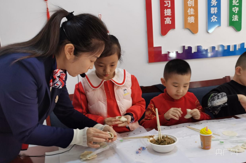 孩子們聽(tīng)老師講傳統(tǒng)習(xí)俗體驗(yàn)包餃子(央廣網(wǎng)發(fā) 唐欣 攝)